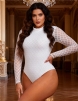 Standard Product Name: black, white 2 colors, lattice mesh, back hollow, splicing round buttons, front and back piece splicing breathable swim cloth lining, medium-high neck, crotch is openable buckle design, M-3XL, lattice medium-high neck one-piece suit