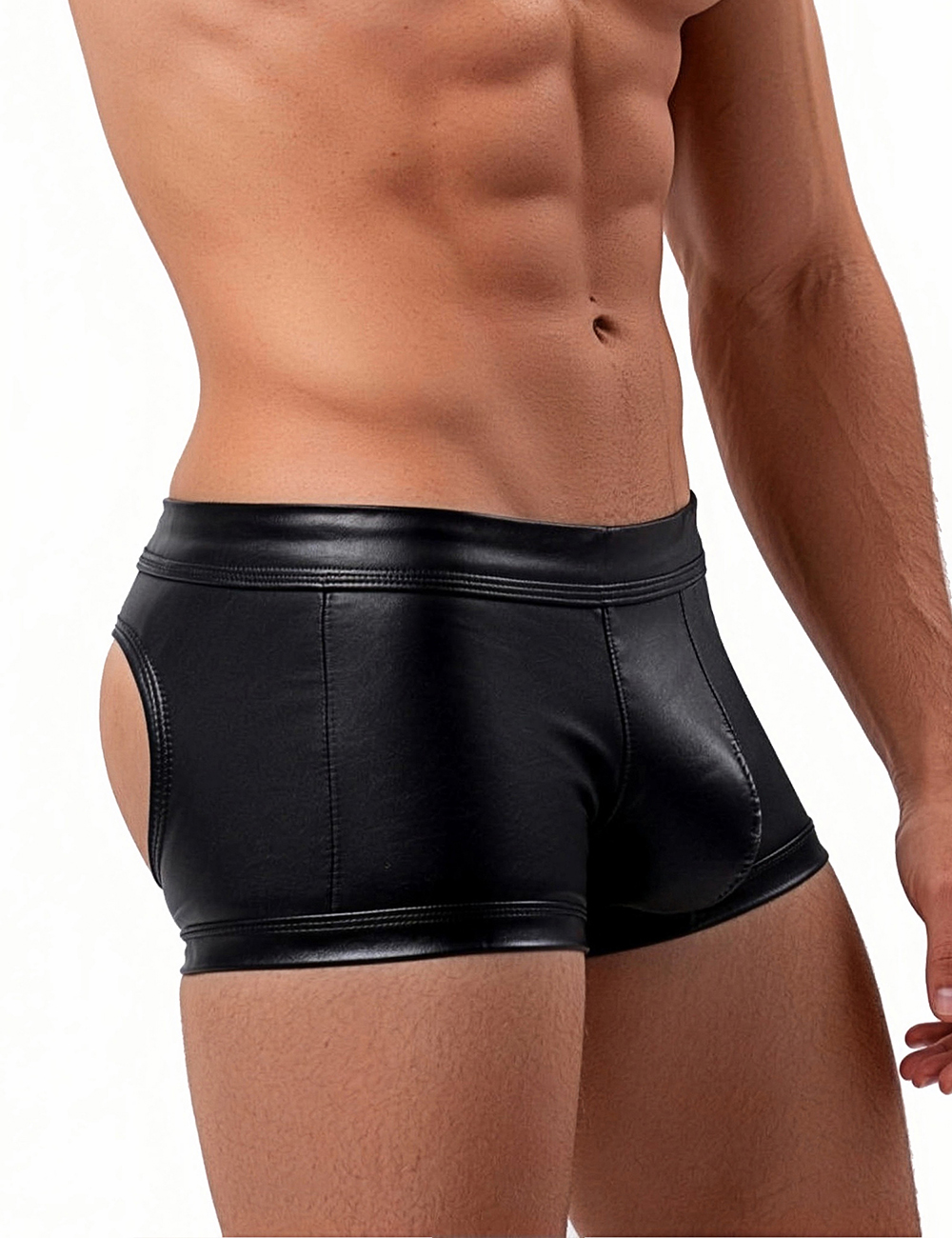 Black Sexy PU Leather Hip Hollow Men Boxer