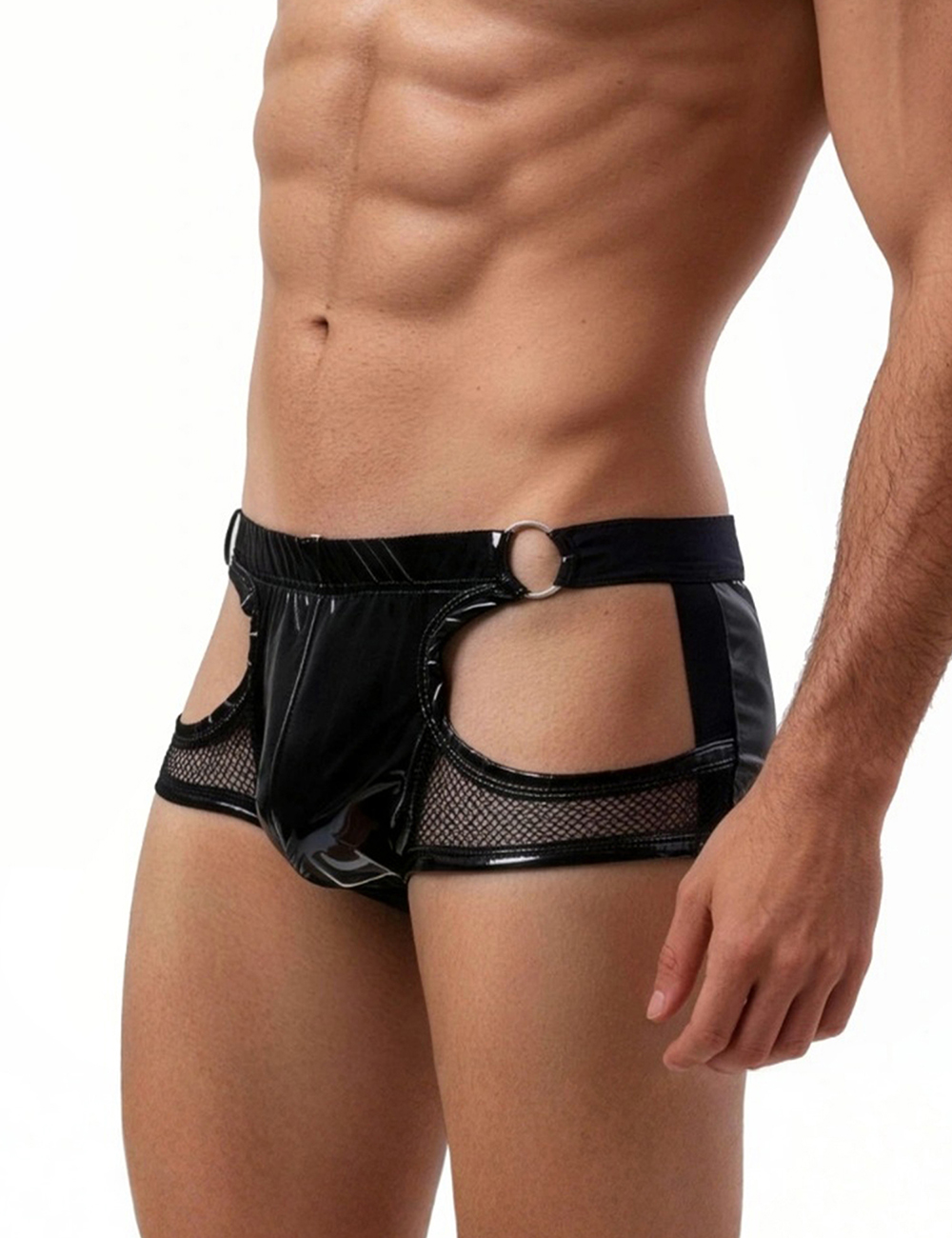 Black Patent Leather Mesh Sexy Low Waist Men Jockstrap