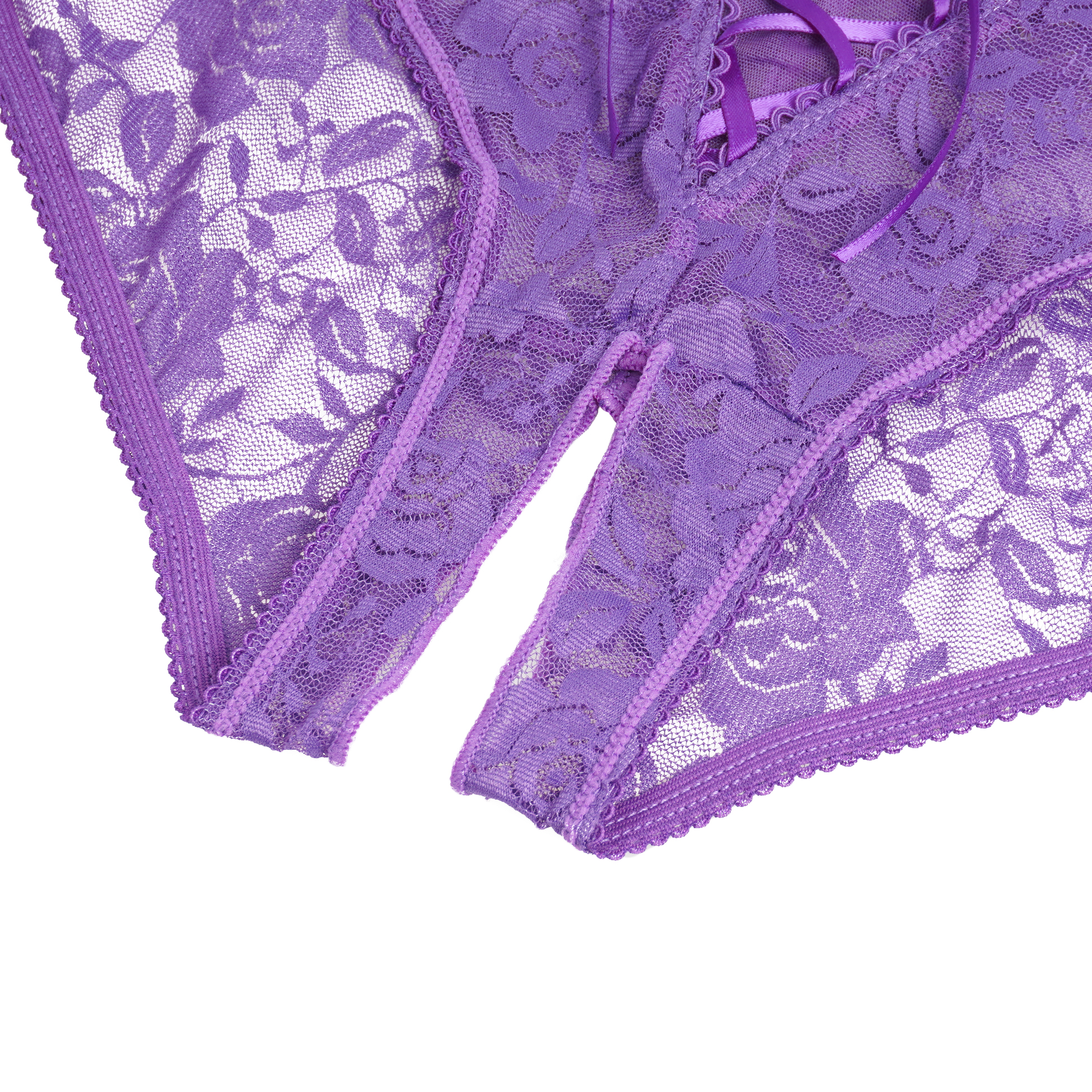 Yellow Open Crotch Strappy Lace Thongs